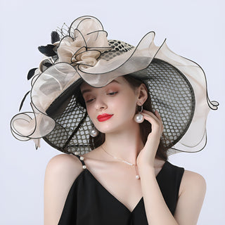 Wide Brim Organza Hat with Silk Flower | Bellarose