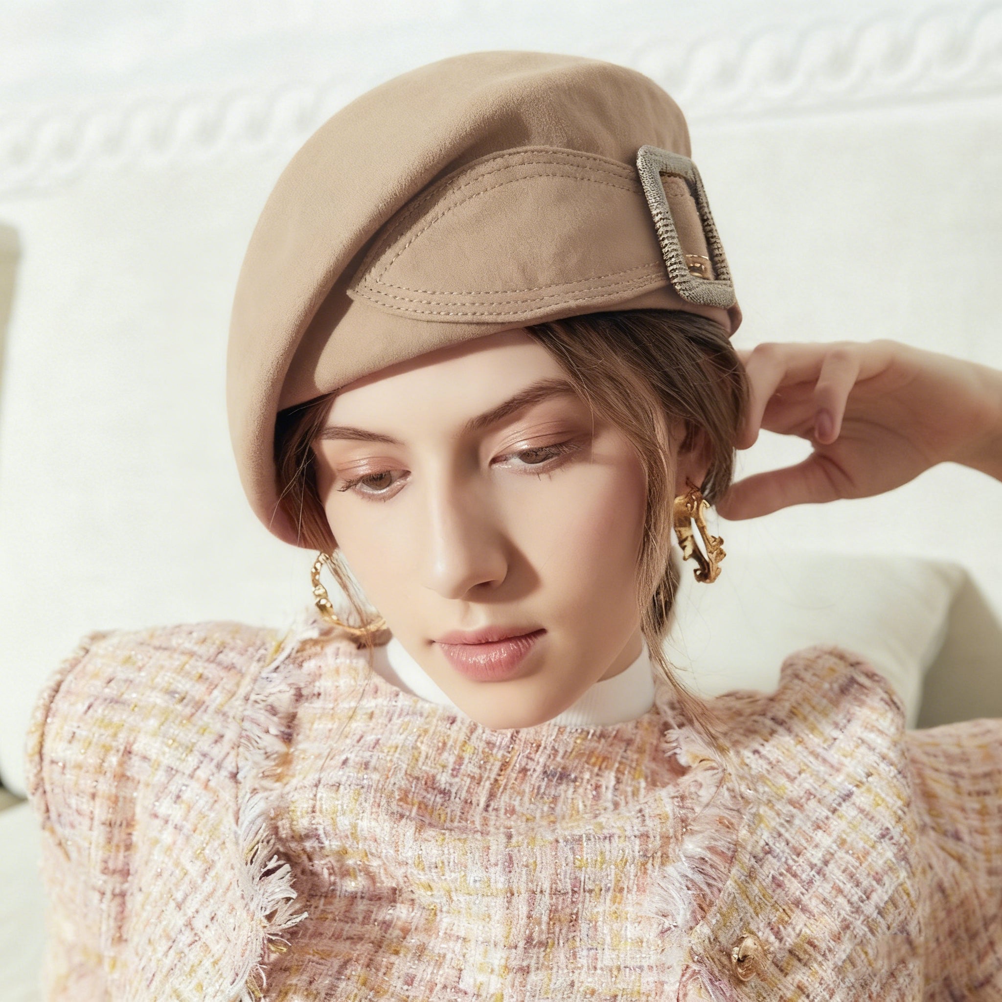 Elowyn is a refined winter beret designed with a structured silhouette and a subtle buckle accent that adds understated character. The clean, rounded shape offers timeless appeal, while the decorative buckle creates a polished focal point. Comfortable and versatile, this beret complements both tailored coats and elegant occasion wear. Ideal for formal gatherings and seasonal events, it brings classic sophistication to cold weather styling.