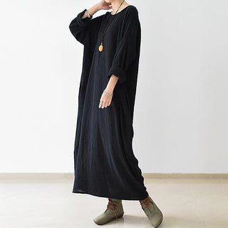 Long Sleeve Black Caftan Dress – Minimal Flowing Silhouette | Noireva