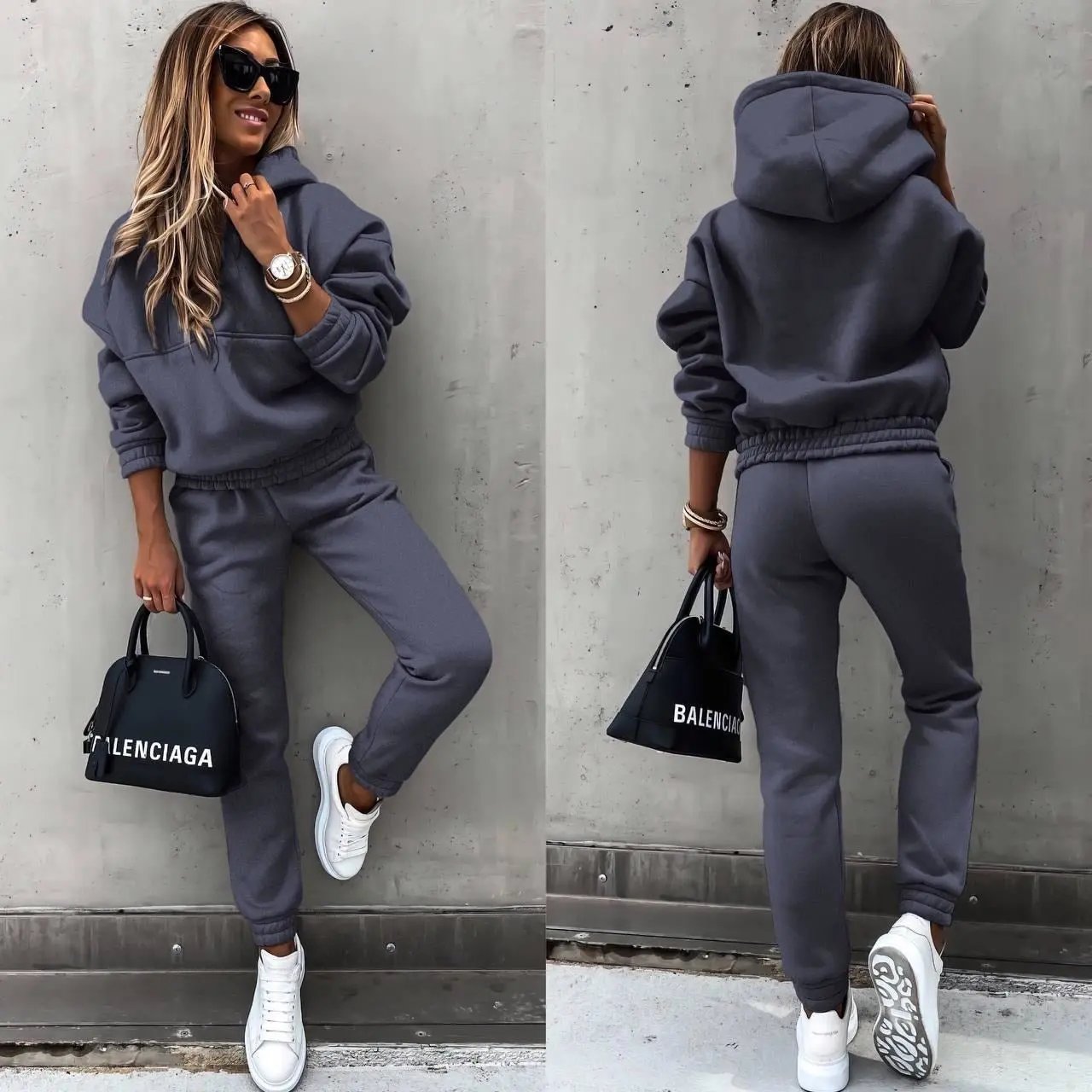 Elmara is a coordinated hoodie and jogger set designed for effortless everyday wear. The relaxed fit creates a comfortable silhouette, while the matching pieces offer a clean, balanced look. The hoodie features an easy pullover design, paired with streamlined joggers that allow for natural movement throughout the day. Ideal for lounging, casual outings, or travel, this set blends comfort with understated modern style.