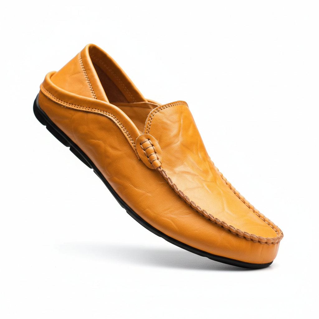 The Marco Valentini Tuscan Moccasins are designed with a refined slip-on silhouette and clean, contoured lines. Hand-stitched detailing enhances the structured profile, adding subtle character to the classic shape. The smooth leather upper offers a polished finish, while the cushioned insole supports comfortable, everyday wear. Balanced between relaxed ease and tailored elegance, these moccasins transition effortlessly from driving to casual outings.