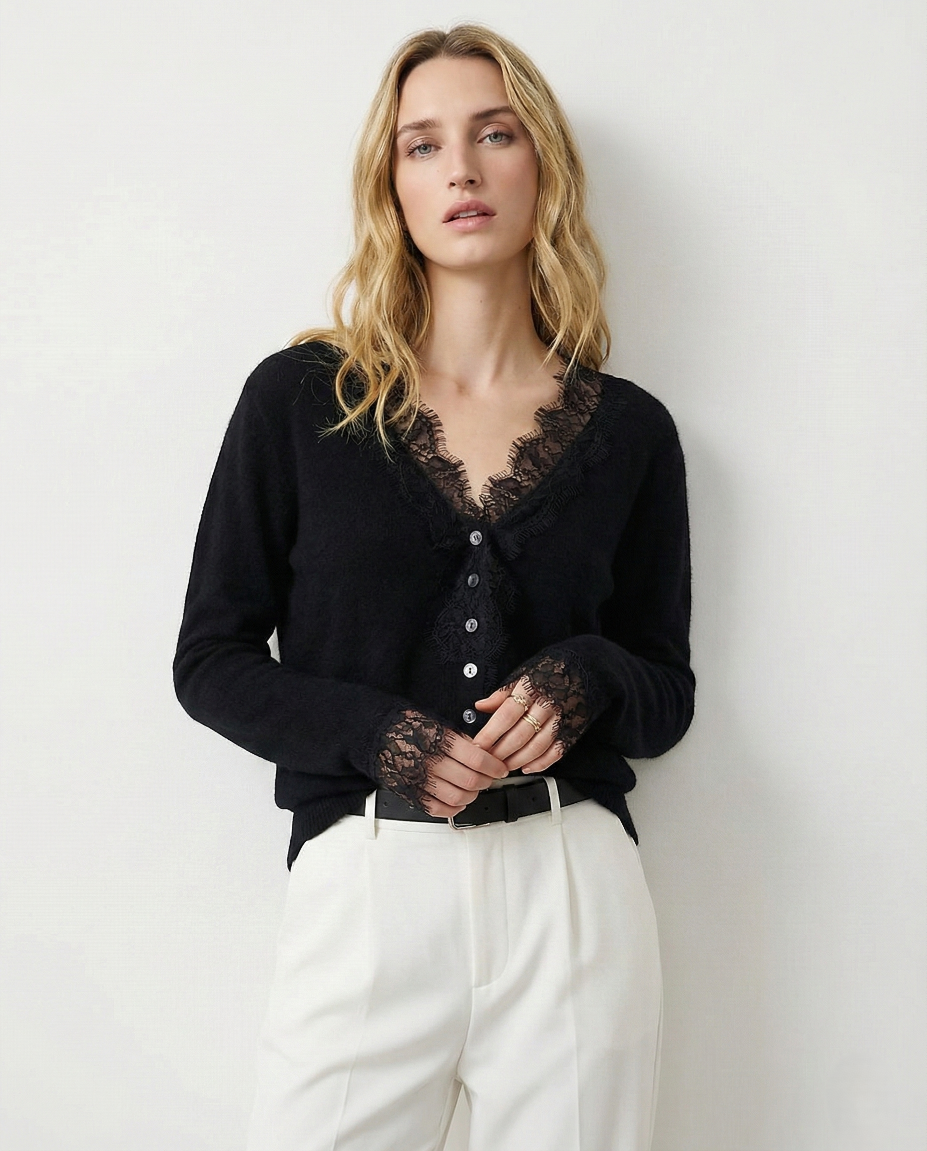 Wrap yourself in refined femininity with Seraphina, an elegant lace detail cardigan for women designed to elevate your everyday wardrobe. This timeless layer combines a soft silhouette with delicate lace accents, creating a graceful balance between subtle charm and polished style.